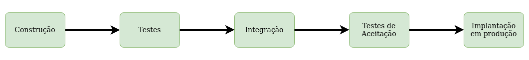 O senso comum sobre o papel de Continuous Deployment (Implantação Contínua) é de ele ser a automação após testes (geralmente, de aceitação) serem validados, o artefato segue para implantação no ambiente de produção numa organização. A forma mais comum é mostrar as etapas de um Pipeline (fluxo de trabalho ou workflow) de desenvolvimento de software com as etapas: Construção, Testes, Integração, Testes de Aceitação e Implantação em produção. A quantidade de etapas e quais etapas envolvidas podem variar a depender do texto de referência consultado ou organização, a essência está representada na figura abaixo.